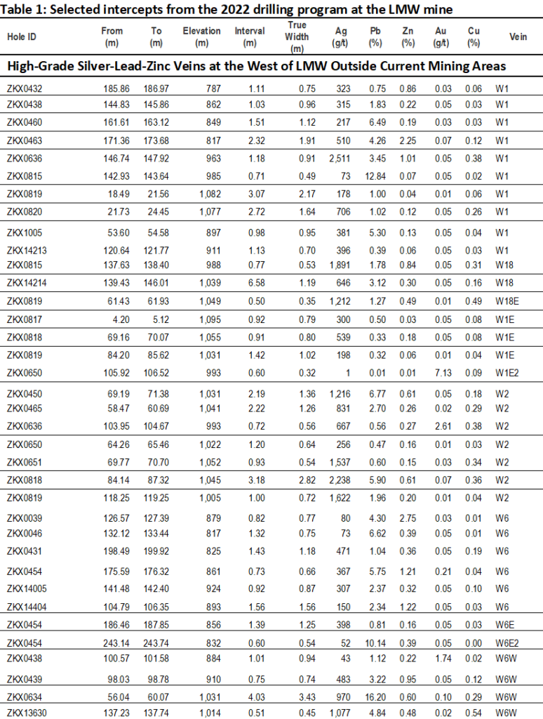 - New Discovery of High-Grade Silver-Lead-Zinc Veins at the West of LMW Outside Current Mining Areas