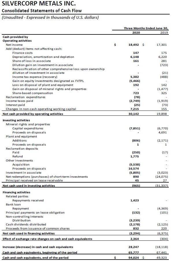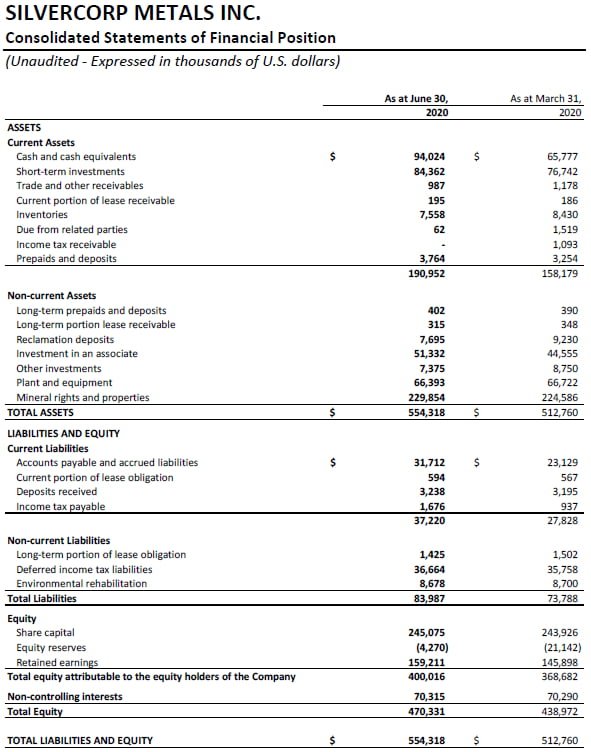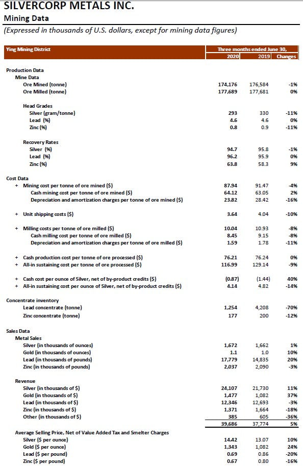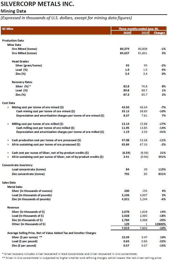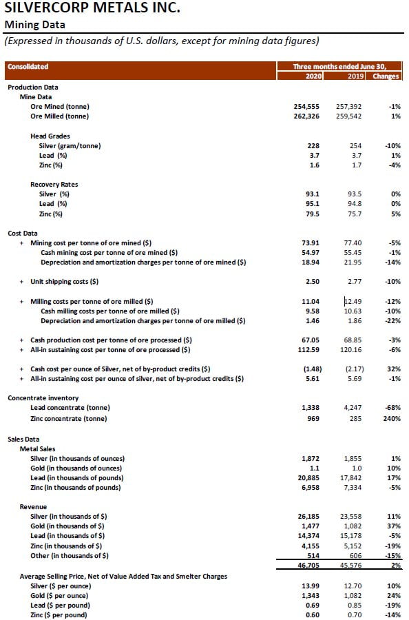 VANCOUVER, British Columbia – August 6, 2020 – Silvercorp Metals Inc. (“Silvercorp” or the “Company”) (TSX/NYSE American: SVM) reported its financial and operating results for the first quarter ended June 30, 2020 (“Q1 Fiscal 2021”). All amounts are expressed in US Dollars.