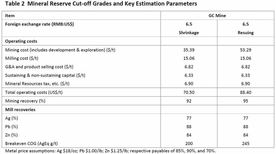The Mineral Reserve estimates for the GC Mine were prepared by Silvercorp under the guidance of an independent Qualified Person, Mr. H. A. Smith, P.Eng, of AMC, who takes QP responsibility for those estimates. The assumption has been made that current stoping practices will continue to be employed at the GC Mine, namely predominantly shrinkage stoping (73% of projected LOM) but also with some cut and fill resuing (27% of projected LOM), using hand-held drills and hand-mucking within stopes, and loading to mine cars by rocker-shovel or by hand. Minimum mining widths of 1.0 m for shrinkage and 0.5 m for resuing are assumed.