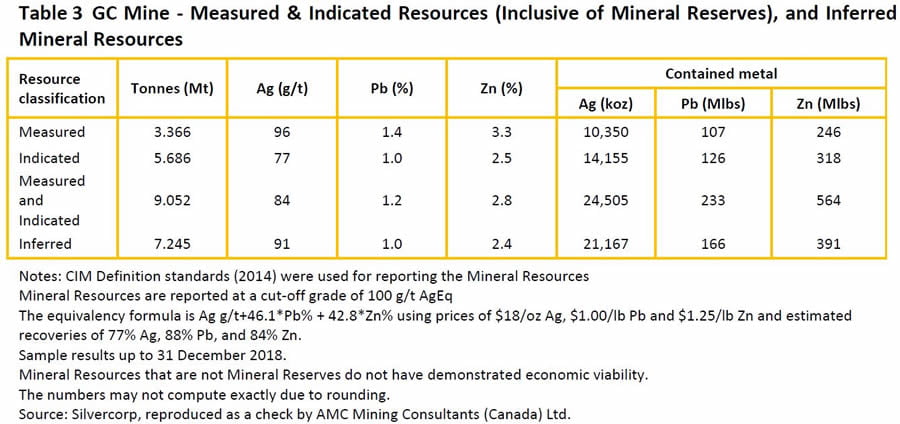 From the start of operations at the GC Mine in 2014 through to December 31, 2018, 1,251,000 tonnes have been mined at average head grades of 96 g/t silver, 1.5% lead and 2.7% zinc.