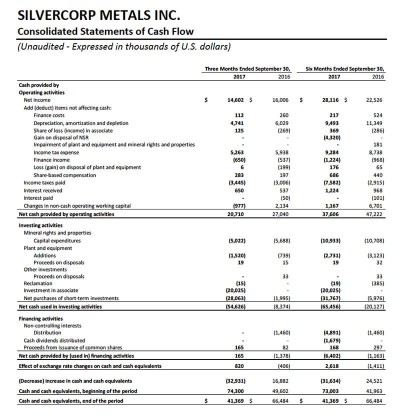 VANCOUVER, British Columbia – November 8, 2017 – Silvercorp Metals Inc. (“Silvercorp” or the “Company”) (TSX: SVM) (NYSE American: SVM) reported its financial and operating results for the second quarter ended September 30, 2017. All amounts are expressed in US Dollars.